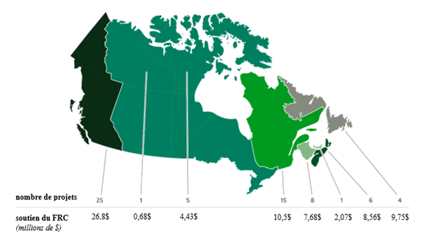 - Figure 1 : Nombre et valuer des projets du FRC financés par région, en millions de dollars (MPO, 2020)