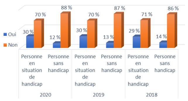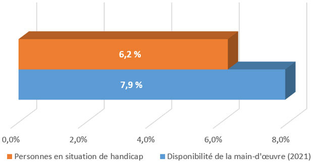 - Moins de 60 % des personnes en situation de handicap âgées de 25 à 64 ans occupent un emploi