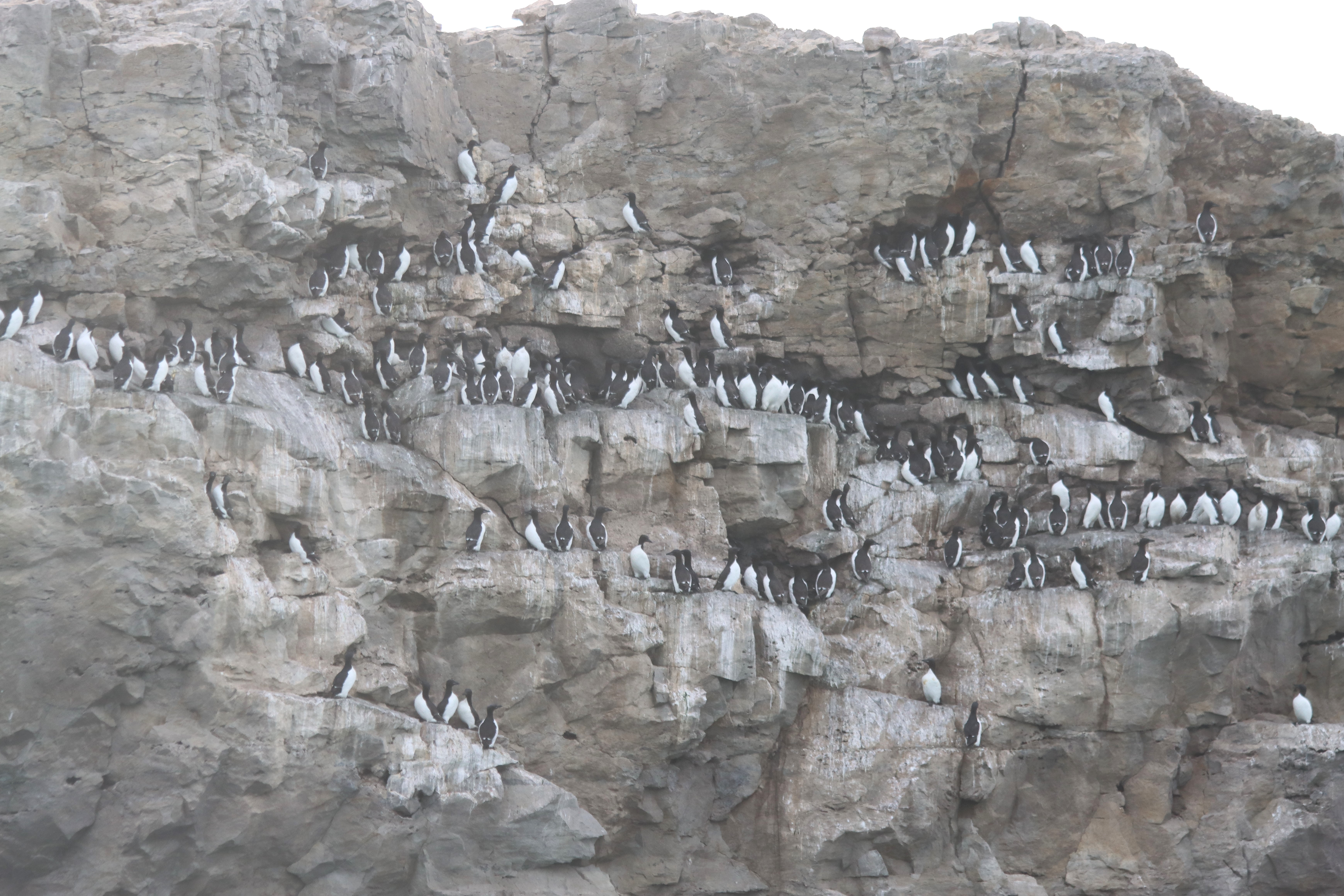 Hundreds of Thick-billed Murres crowd the cliffs at Cape Parry Bird Migratory Bird Sanctuary, within the Anguniaqvia Niqiqyuam Marine Protected Area. Photo credit: Danica Hogan.