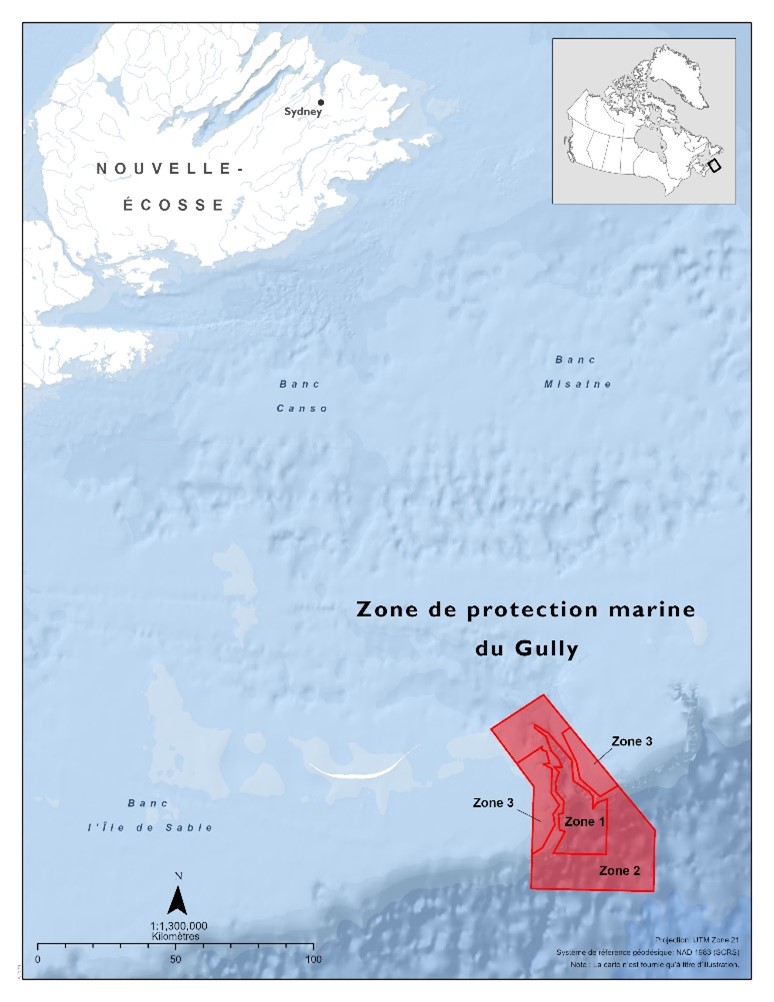 - Zone 1 - La partie centrale du canyon qui bénéficie du plus haut niveau de protection et où aucune activité de pêche commerciale n’est autorisée;