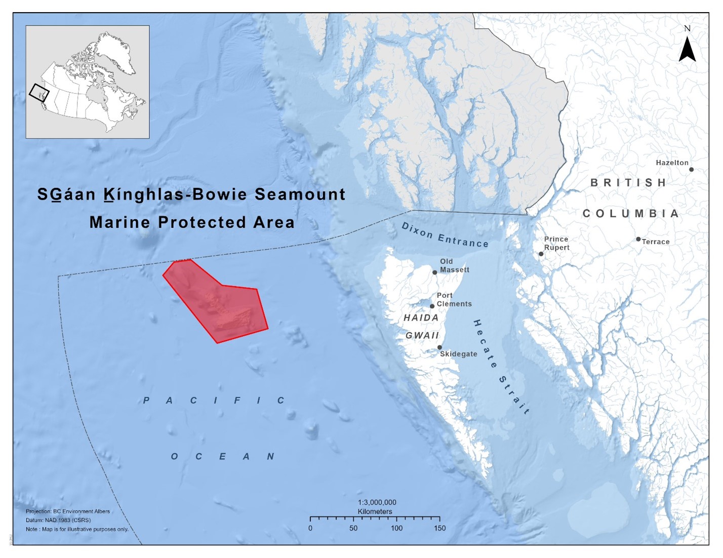 This MPA is located 180 km west of Haida Gwaii in the Offshore Pacific Bioregion; Pacific Ocean.