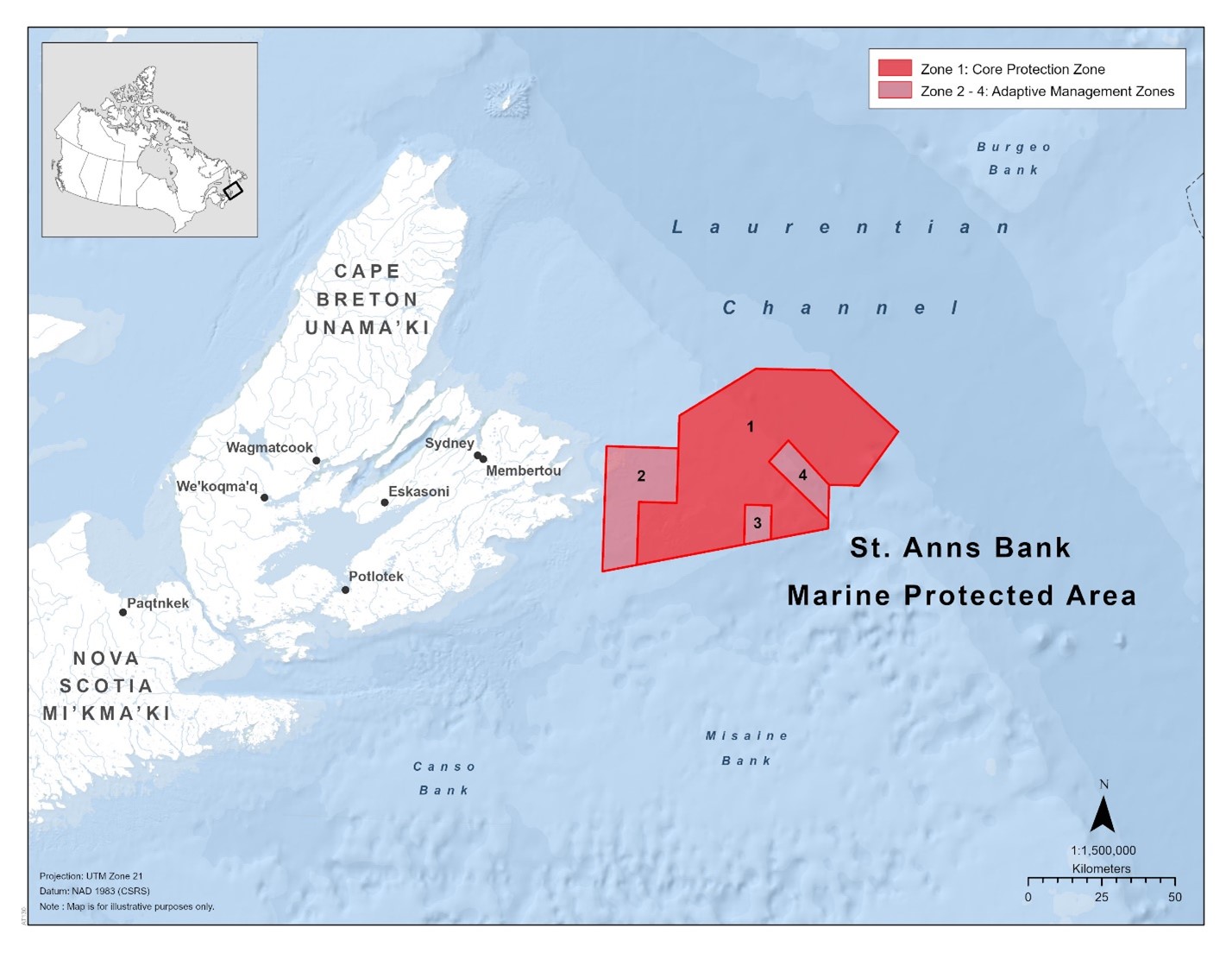 This MPA is located east of Cape Breton Island, Nova Scotia (NS) in the Scotian Shelf Bioregion; Atlantic Ocean.