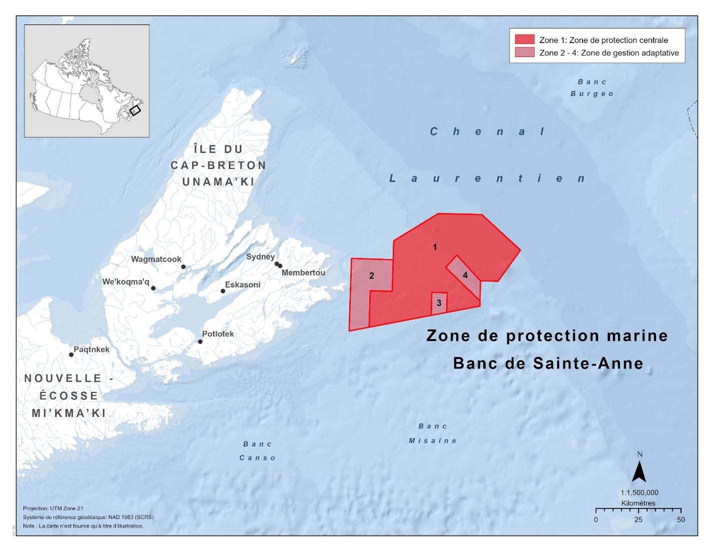 La gestion de la ZPM du banc de Sainte-Anne est guidée par le Plan de gestion de la ZPM qui a été élaboré en partenariat avec les Mi’kmaq de Nouvelle-Écosse et le Comité consultatif de la ZPM. Le Plan de gestion a été publié en 2023 et comprend des objectifs de gestion et d’intendance ainsi que de recherche et de suivi de la ZPM. Le plan présente également des principes directeurs issus à la fois de la vision du monde des Mi’kmaq et des principes directeurs occidentaux en matière de ZPM.