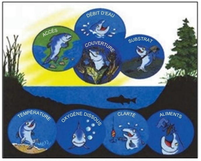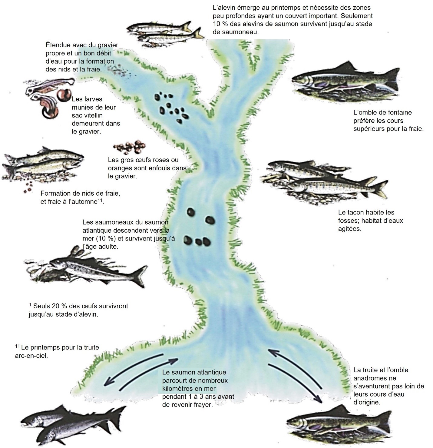 - un débit d’eau adéquat et l’accès à divers habitats pour chaque cycle biologique (figure 1.1).