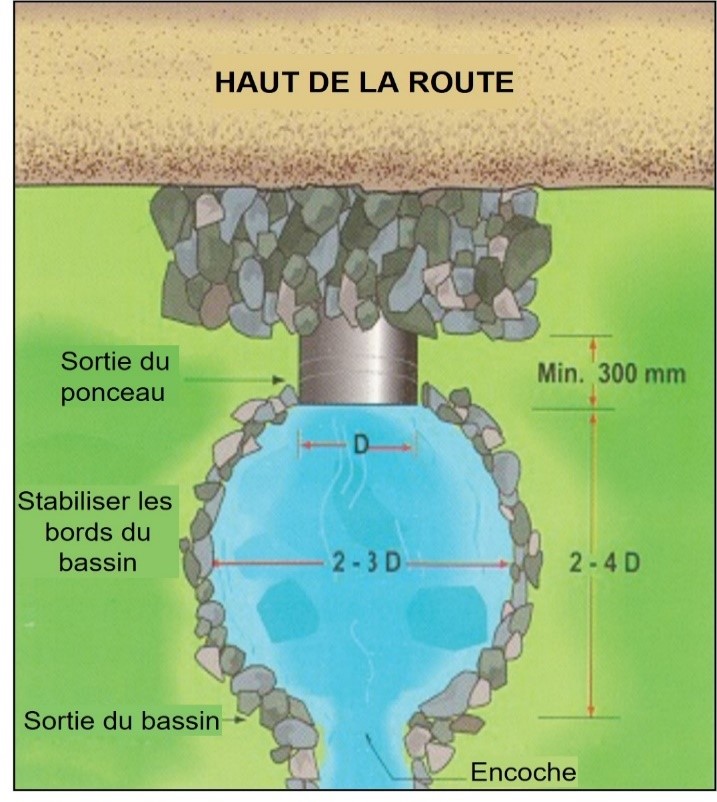 Un substrat convenable est essentiel à la productivité des poissons. Les poissons ont besoin d’aires de fraie bien aérées et à fond de gravier. Les zones d’élevage nécessitent des composants de substrats plus gros, qui fournissent aux jeunes poissons des aires de repos et un abri contre les prédateurs. Les poissons ont besoin d’un débit de cours d’eau adéquat pour garantir que l’habitat est accessible. Le débit des cours d’eau influe également sur d’autres facteurs de l’habitat, comme la température de l’eau et les niveaux d’oxygène dissous. Le débit est nécessaire pour fournir de l’oxygène aux œufs en développement et éliminer les déchets. Les sections de cours d’eau plus profondes où le courant est plus lent créent de bonnes aires d’alevinage et de croissance pour les salmonidés nouvellement éclos qui grandissent. Un débit excessif et des vitesses élevées de l’eau peuvent déplacer les poissons loin de leur habitat et créer des barrières migratoires. Les fosses et les étangs sont utilisés pour l’hivernage. En fin de compte, le débit détermine l’espace disponible (zone mouillée) pour les poissons. L’accès à l’habitat est essentiel au maintien des populations de poissons. Les obstacles au passage du poisson peuvent aliéner de grandes zones d’habitat productif de fraie et d’élevage.