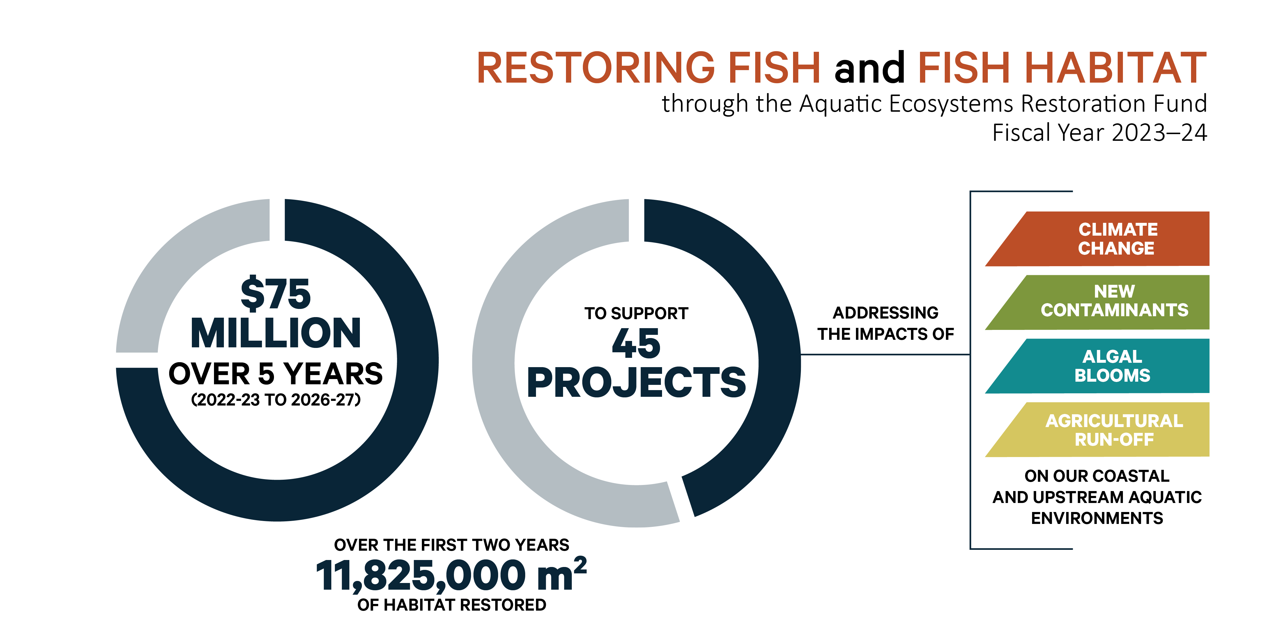 This report describes how our departments carried out these responsibilities from April 1, 2023 through March 31, 2024. This includes our efforts to conserve and protect fish habitats across Canada in order to confront mounting environmental pressures while supporting economic activities. It also includes all of the activities we undertake in collaboration with our partners.