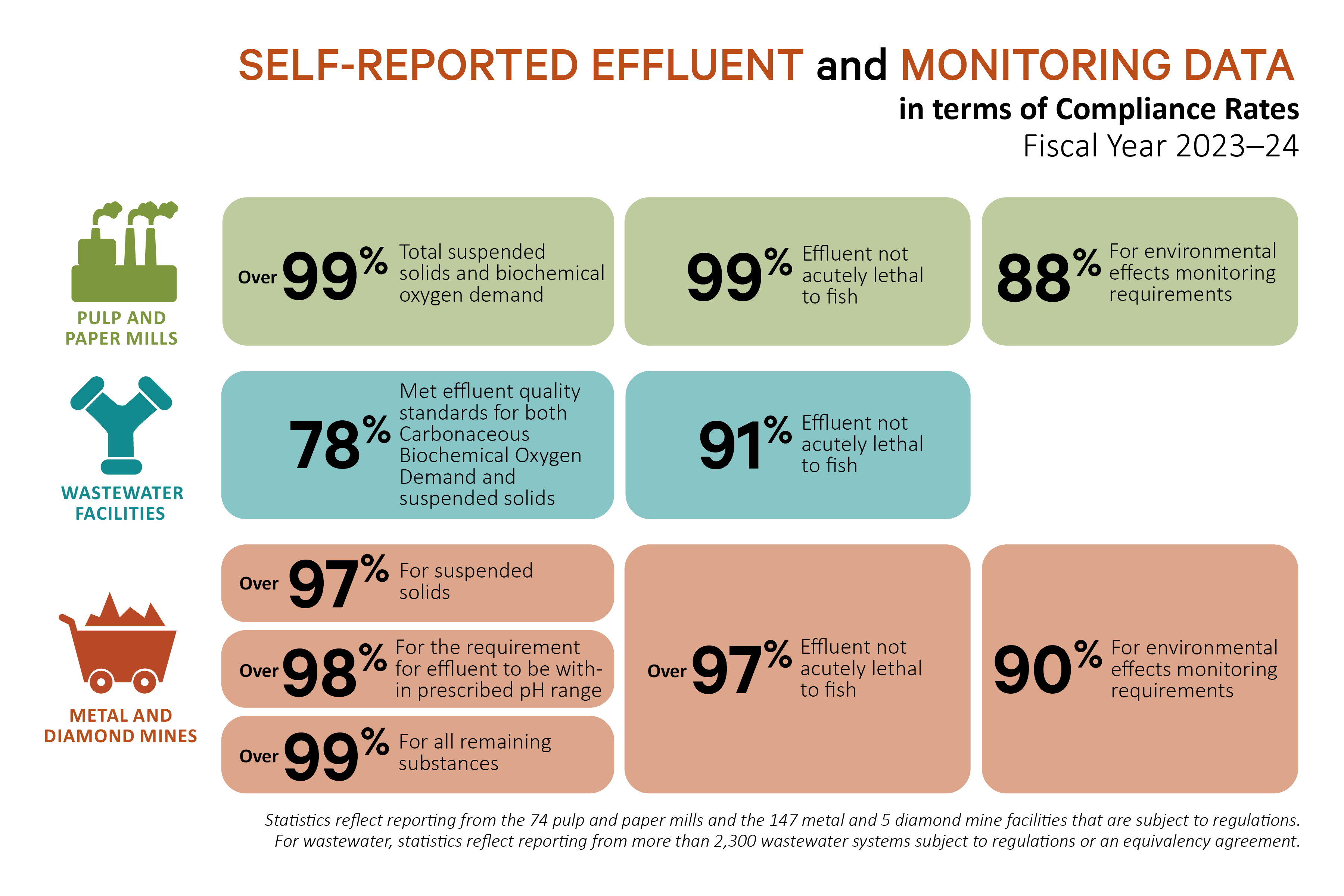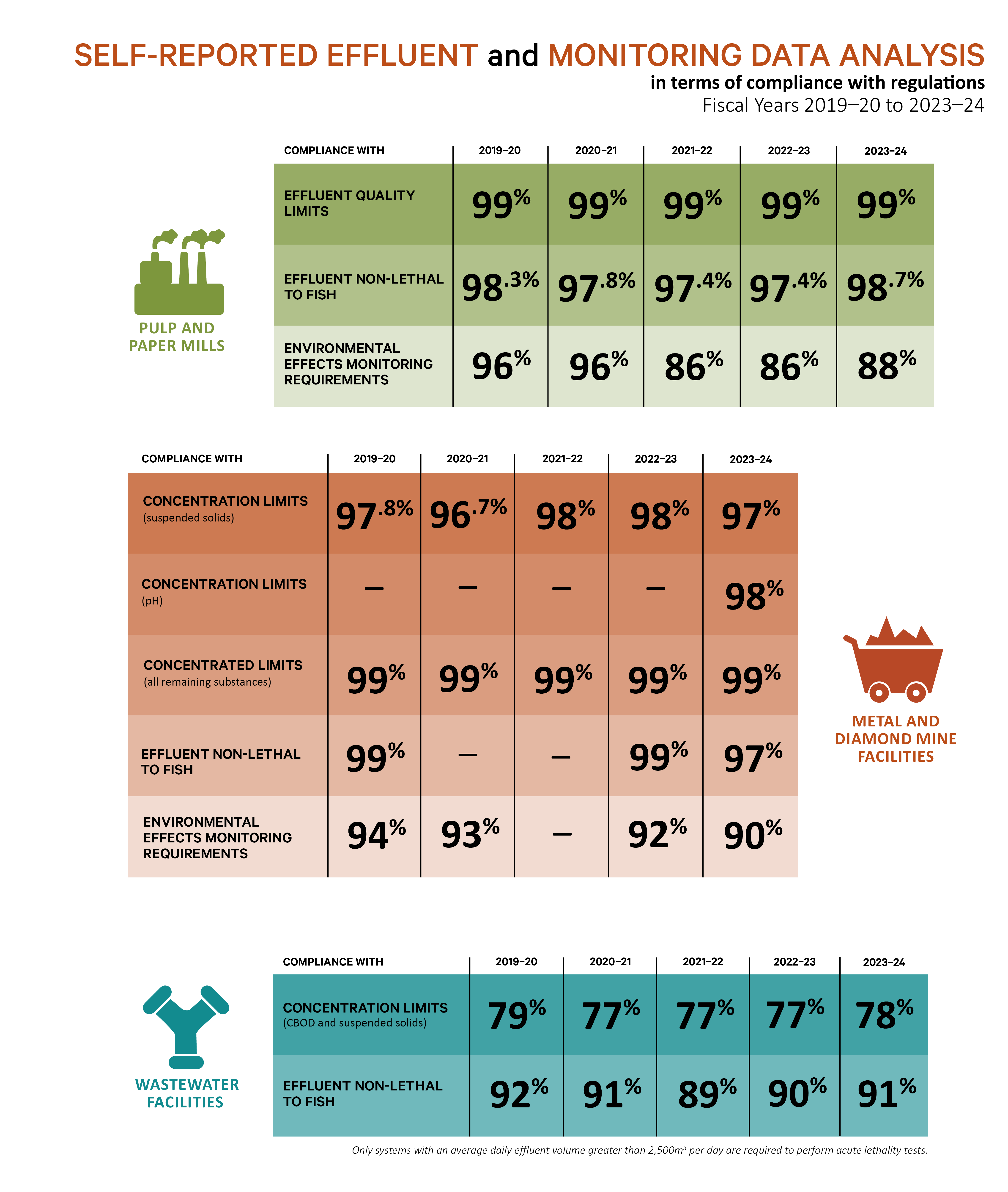 Infographic: Self-reported effluent and monitoring data analysis in terms of compliance with regulations - fiscal years 2019-20 to 2023-24