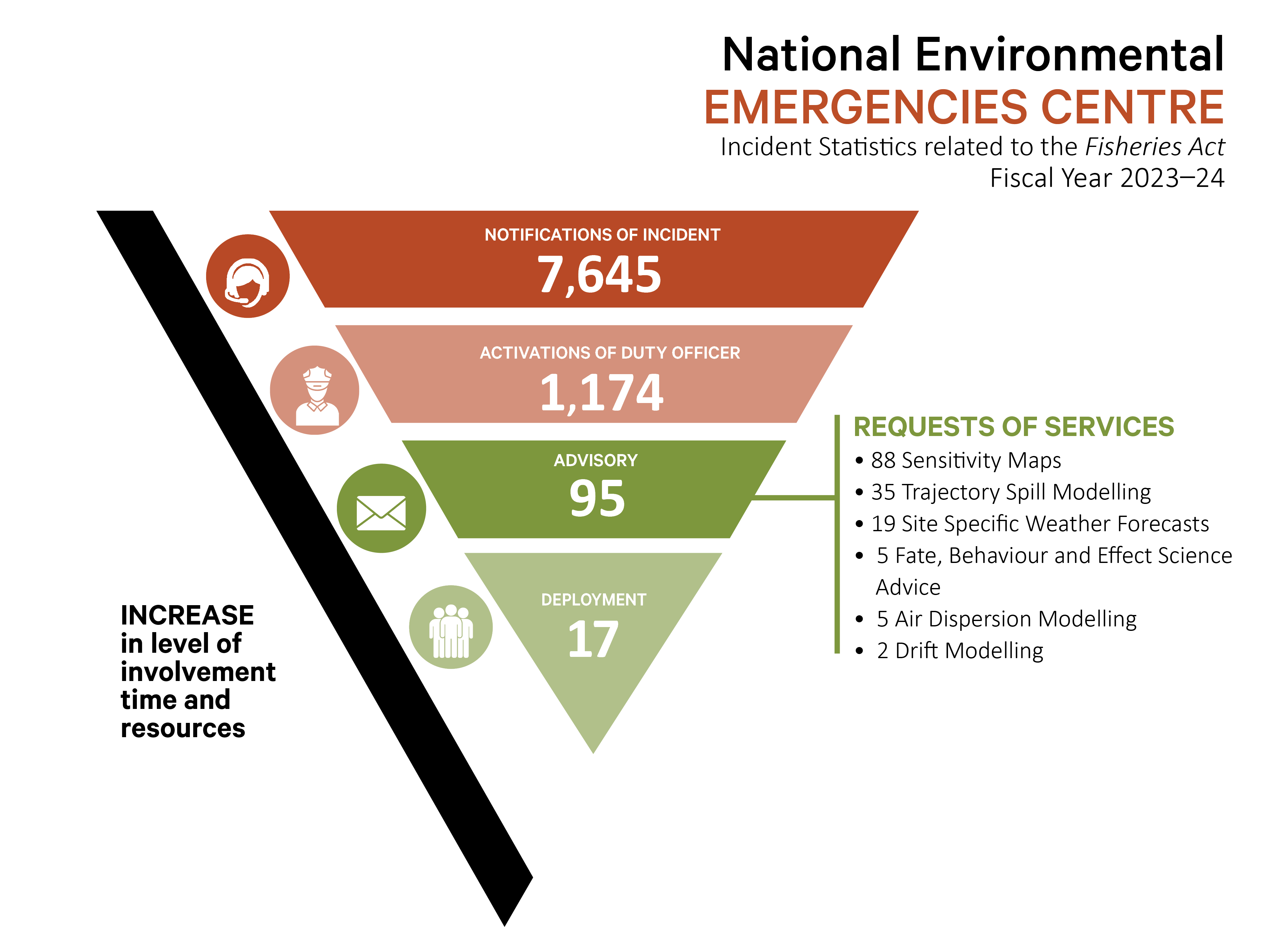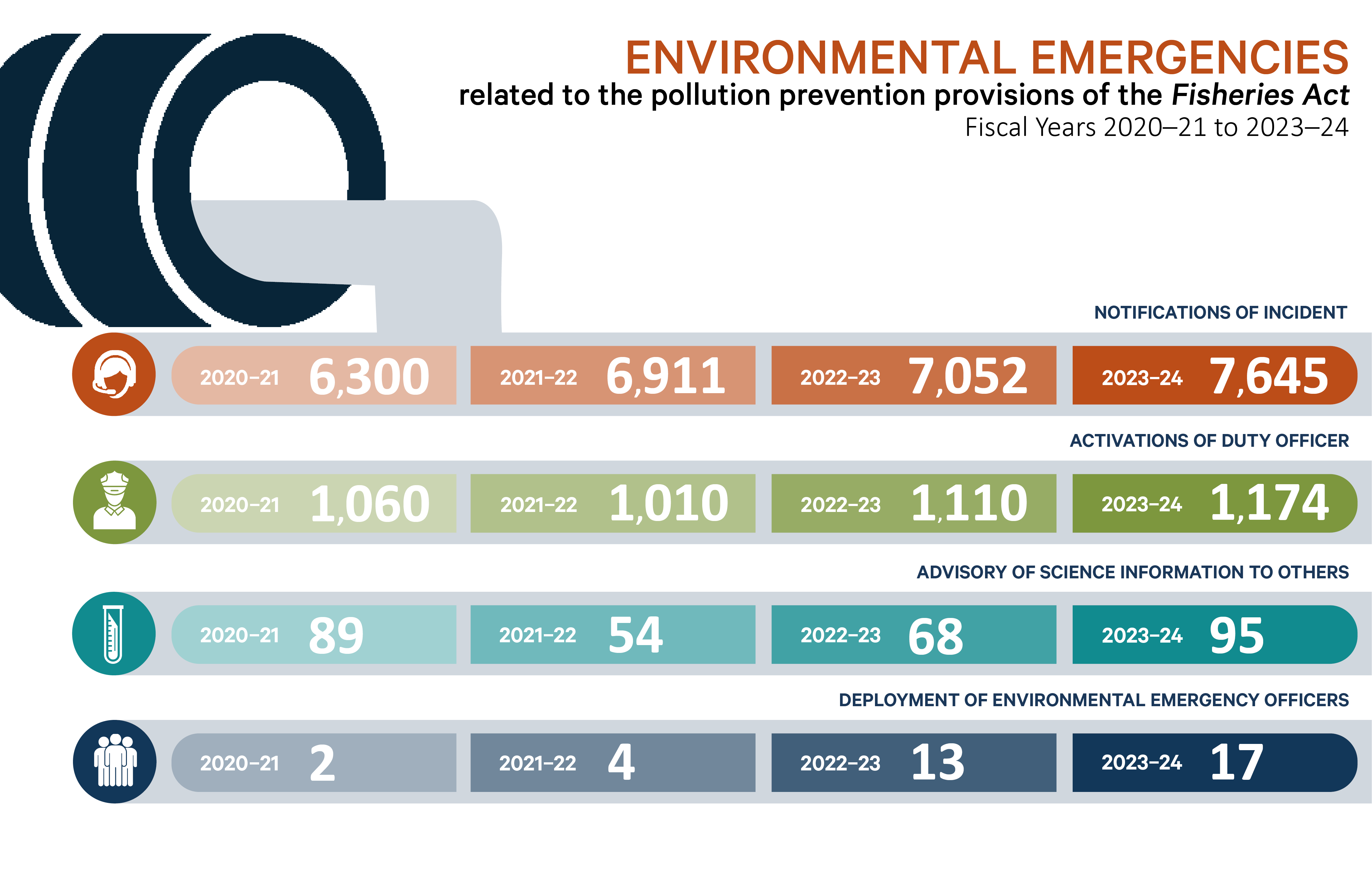 Infographic: Environmental emergencies related to the pollution prevention provisions of the Fisheries Act - Fiscal years 2020-21 to 2023-24