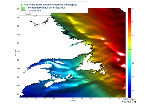 Afin de combler cette lacune dans les connaissances, on associera des ensembles actuels de données d'observation issus des marégraphes (GPS et niveaux des eaux) et les résultats de modèles océanographiques, les estimations du changement relatif du niveau de la mer ainsi qu'un modèle de la hauteur du niveau de la mer (géoïde) afin de relever la variabilité spatiale pertinente des hauteurs des eaux pour toutes les zones littorales et extracôtières du Canada, y compris l'Arctique. Ce projet permettra de définir une référence pour établir les conditions actuelles et futures, y compris le niveau des eaux, le niveau des marées, les vagues et ondes de tempête, les zones intertidales, etc. On pourra ainsi évaluer plus efficacement les risques futurs pour les zones littorales et les infrastructures en cas de phénomènes extrêmes de montée des eaux.
