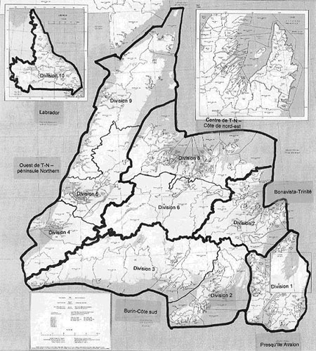 Figure 1. Divisions de recensement de Terre‑Neuve‑et‑Labrador et régions de résidence.
