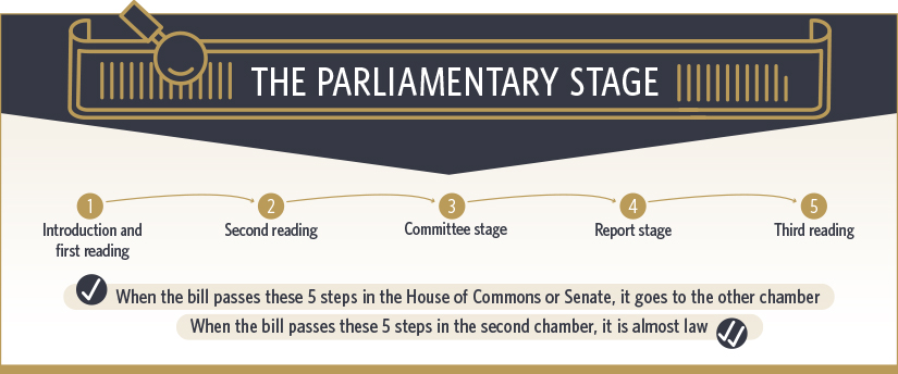 When the bill passes these 5 steps in the House of Commons of Senate, it goes to the other chamber